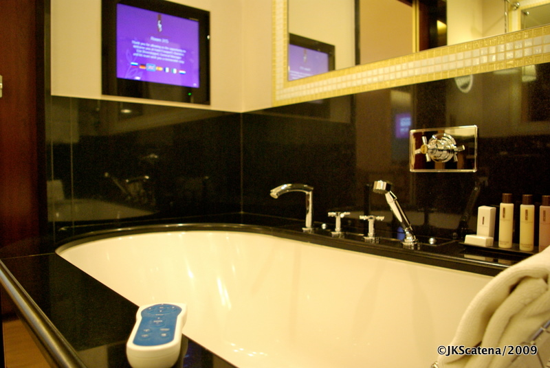 Televisão na banheira, com controle à prova d’água