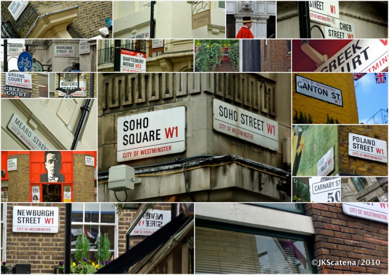 Fascinado que sou por cidades (e por Londres!), resolvi abordar os nomes das ruas das redondezas. Caminhei principalmente pelo Soho (a área boêmia), chegando na Regent St. e passando também pela Carnaby St.